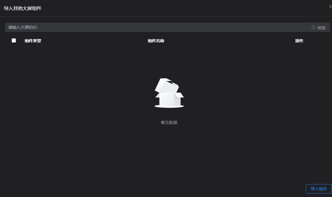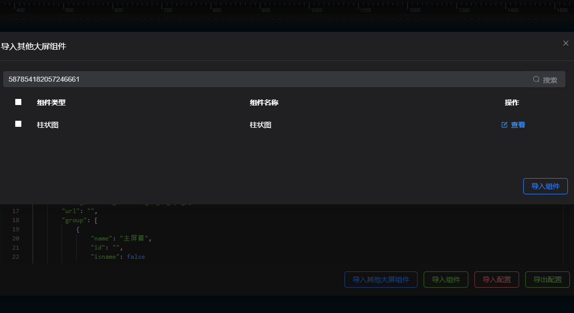 点击导入其他大屏组件,弹窗展示页面