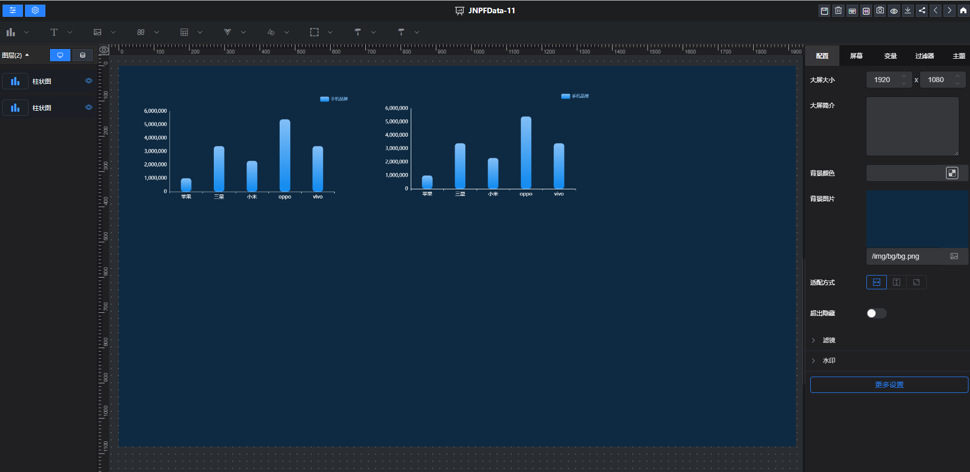 右侧配置为大屏画布配置