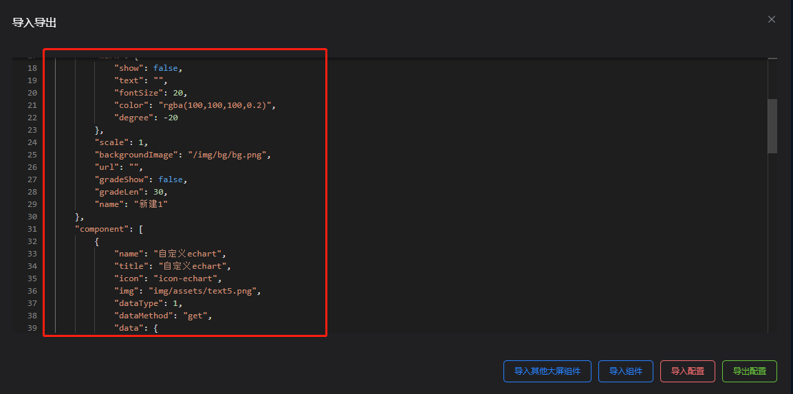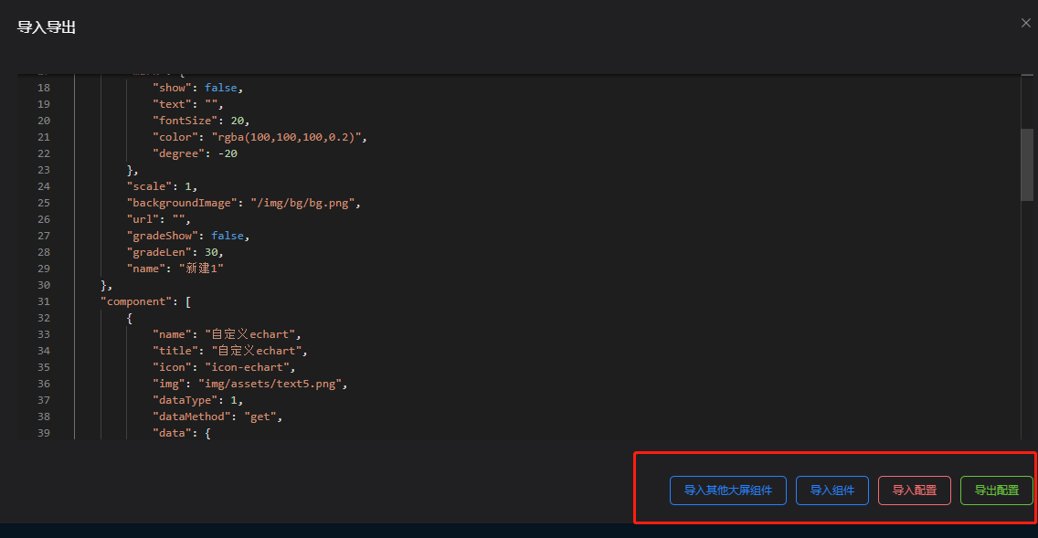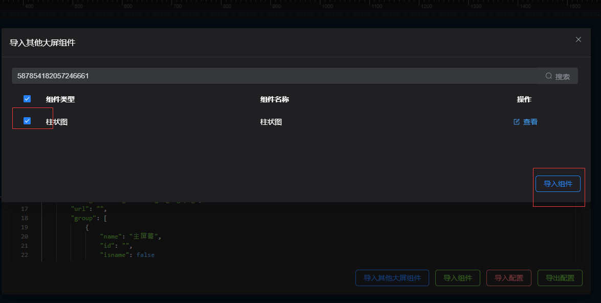 可导入其他大屏组组件、导入组件、导入配置、导出配置