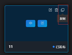 鼠标移至模板上方,展示按钮,点击复制按钮