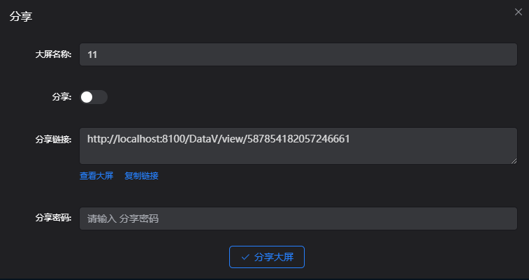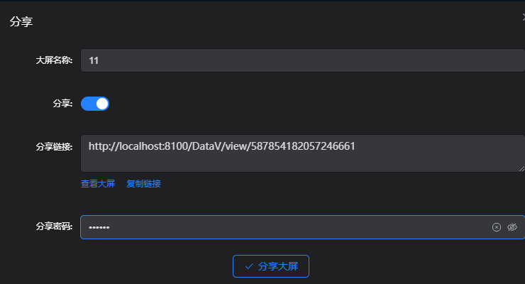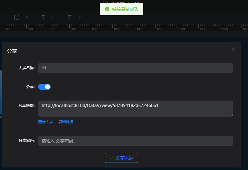 点击复制链接,提示复制成功,可通过复制的链接查看大屏
