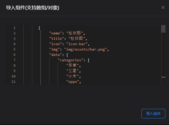 输入正确数据,点击导入组件,成功导入组件