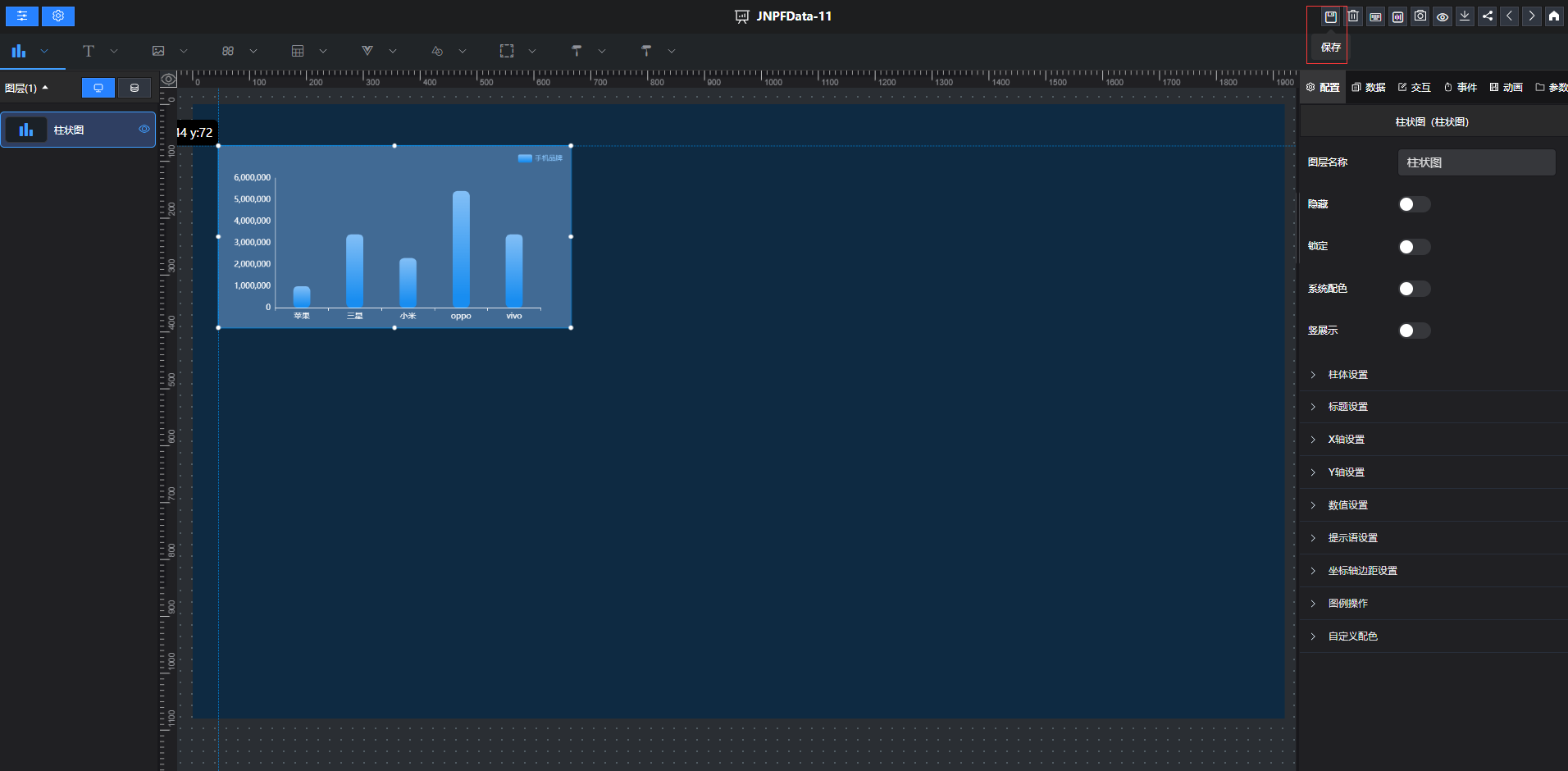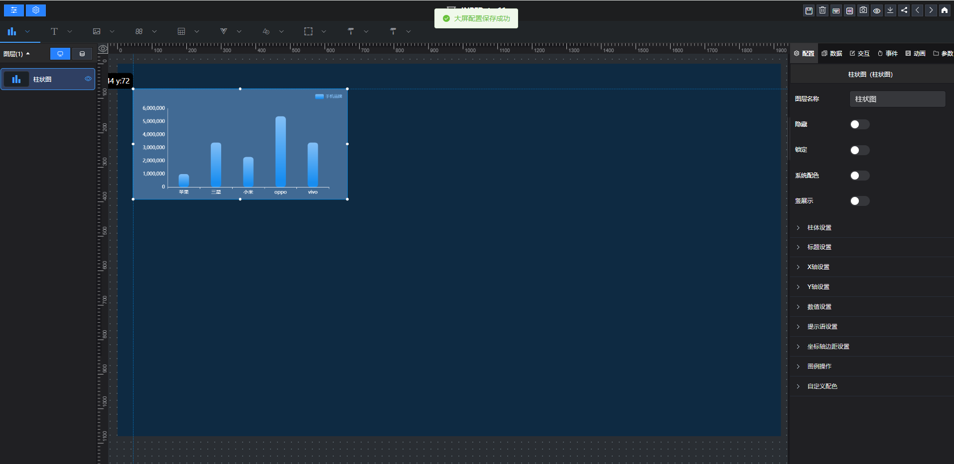 提示保存成功,停留在设计页面,可继续进行大屏设计
