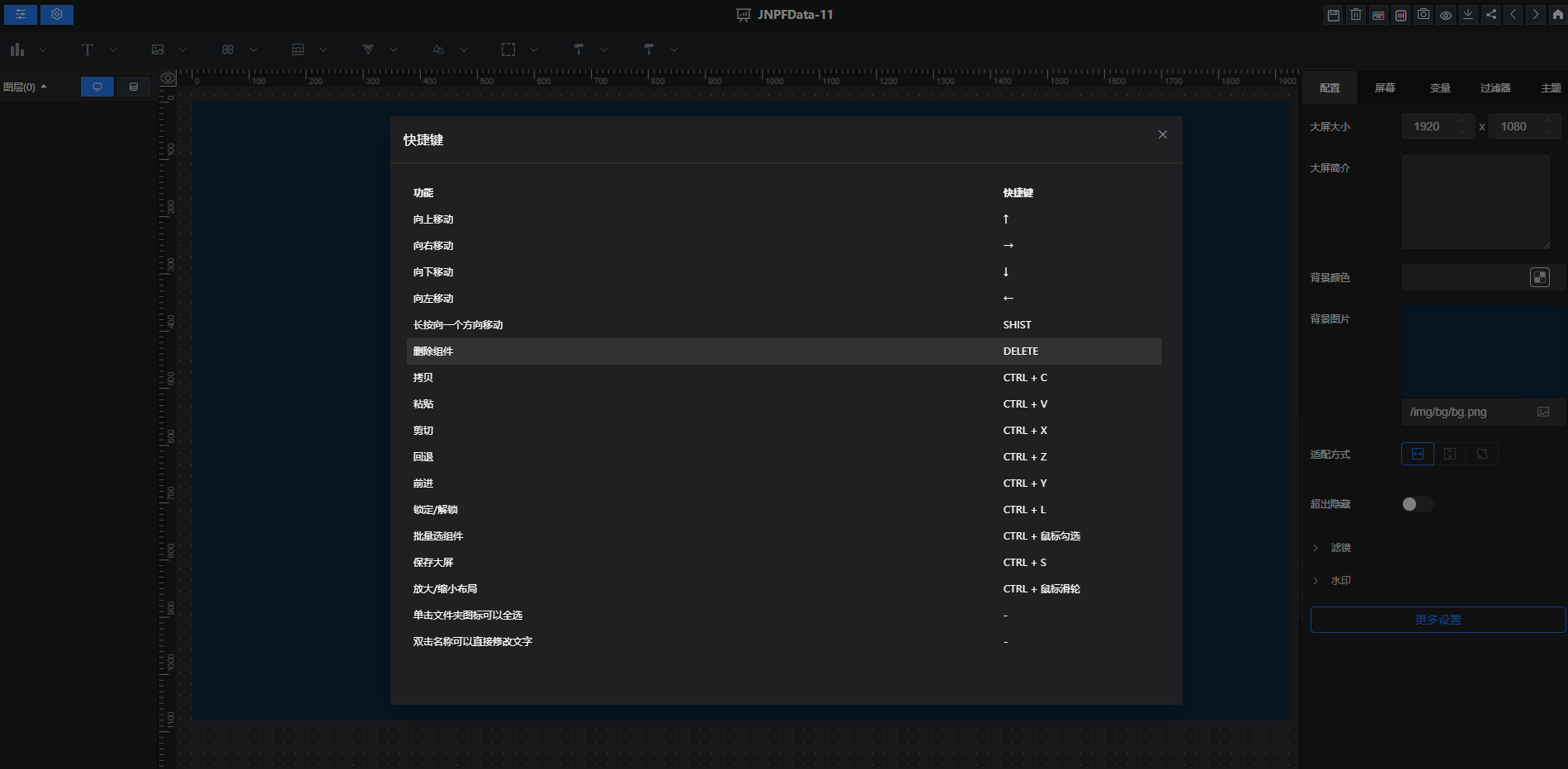 以上就是 JNPF 大屏设计的完整实操指南,从大屏创建、组件拖拽、数据绑定,到全局配置、分享导出,覆盖了指挥决策、成果汇报、业务监控等核心场景需求。快捷键操作、组件导入导出、密码分享等功能,还能进一步提升设计效率和数据安全性。
