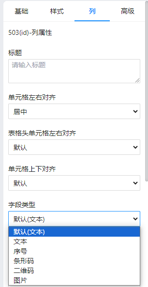 2、组件使用①表格组件:可在列设置中设置字段类型