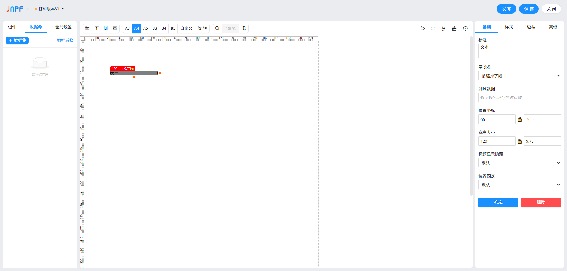 2、点击发布,打印模板发布成功,隐藏保存按钮,发布成功后,该版本无法保存重新发布