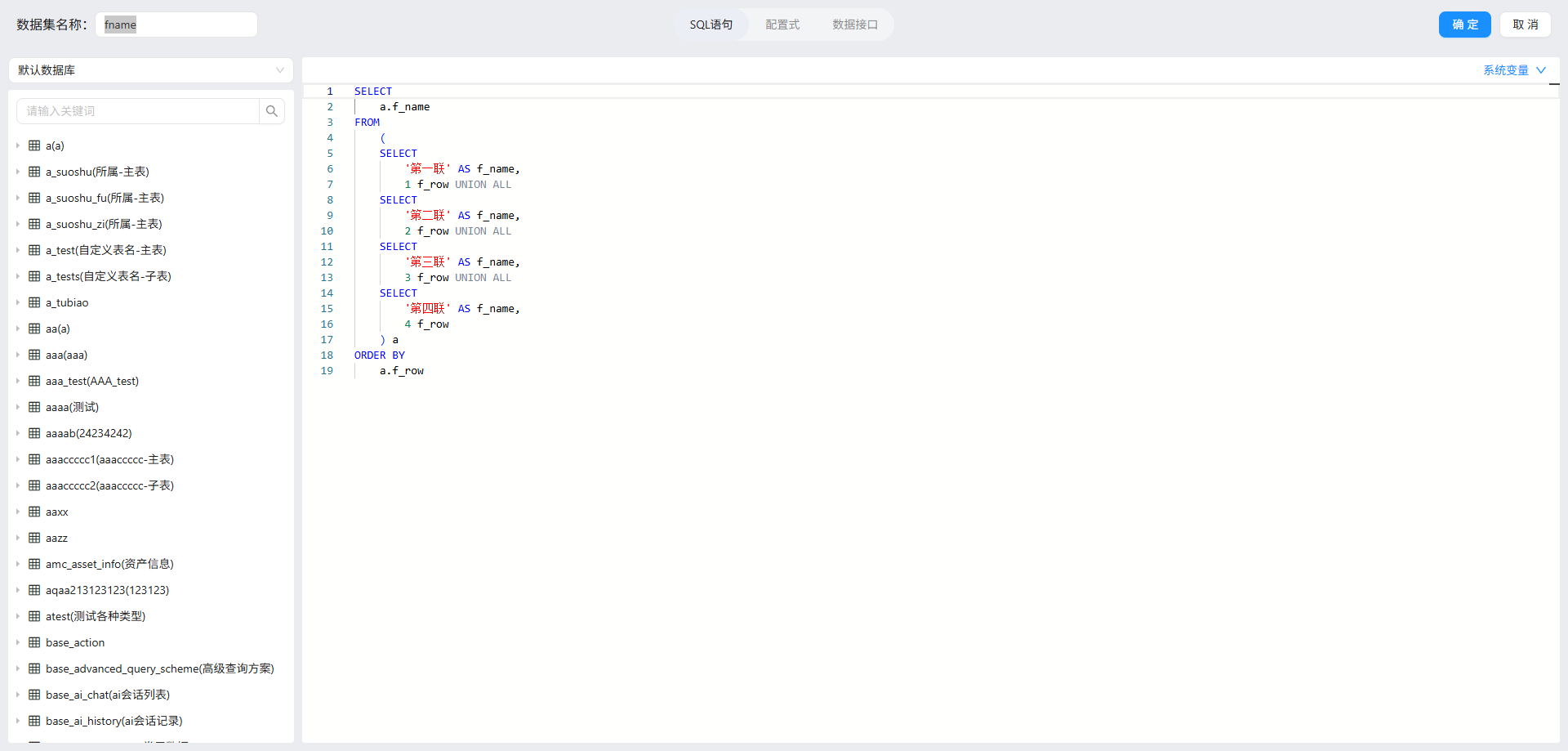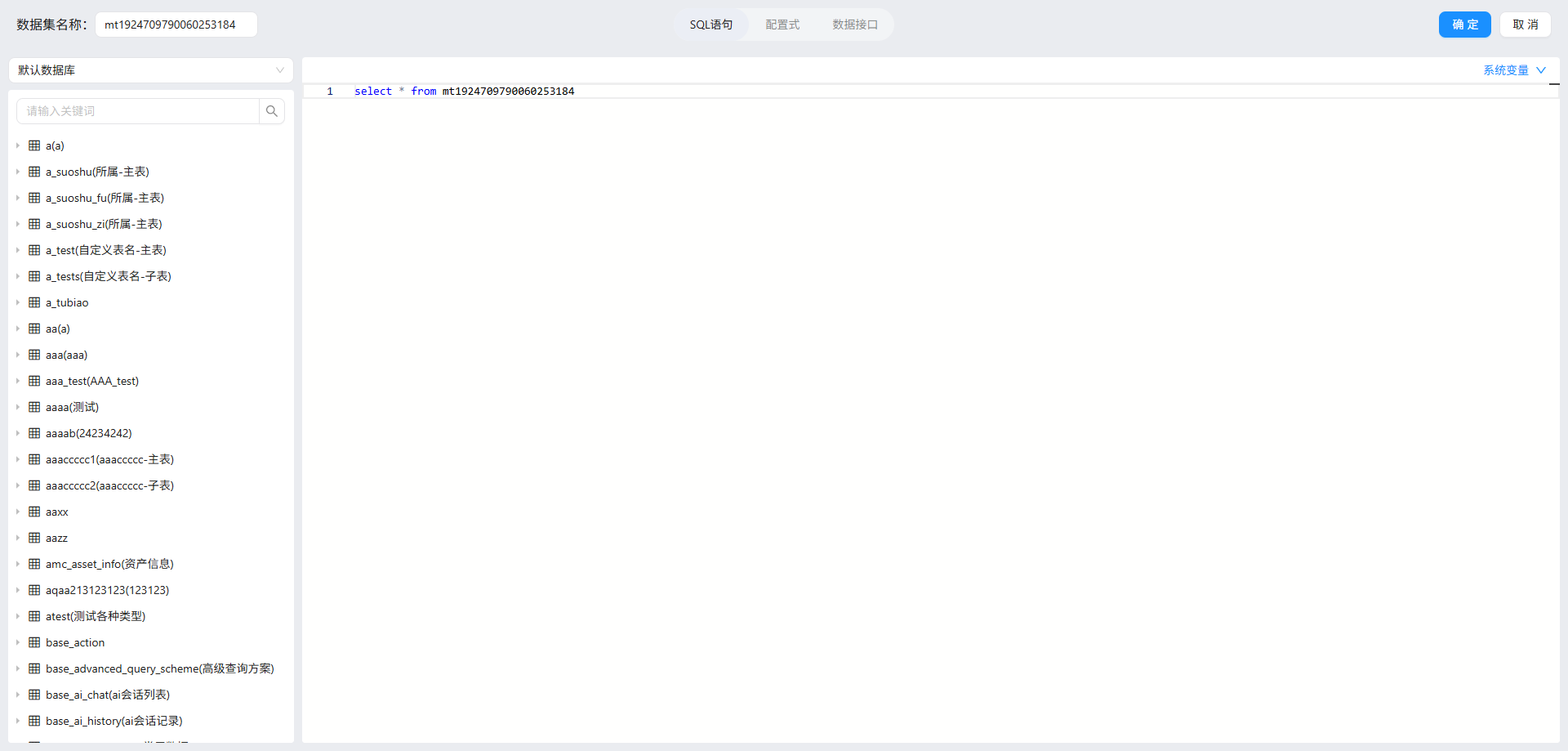 数据集名称必填,数据集名称是唯一的,点击【确定】验证数据集名成的唯一性,存在时提示:“数据集名称已存在”