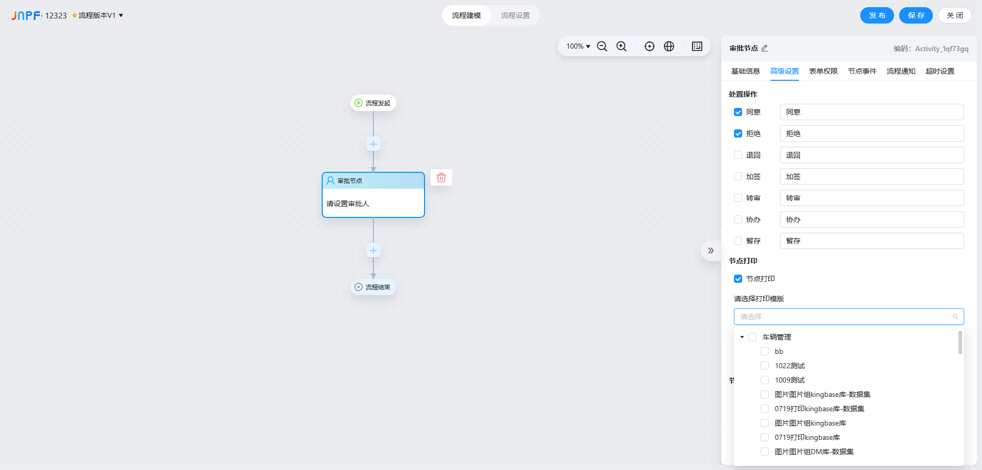 使用打印模板的地方:【注:打印模板的下拉数据只会取到当前应用下的所有数据】表单设计: