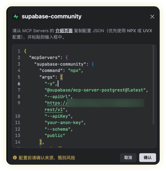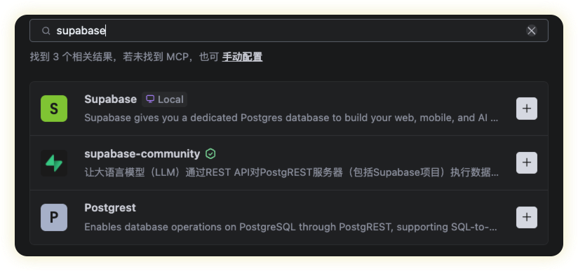 所以,简单的需求直接配就行了, 我一般直接添加 mcp, Connect Supabase。