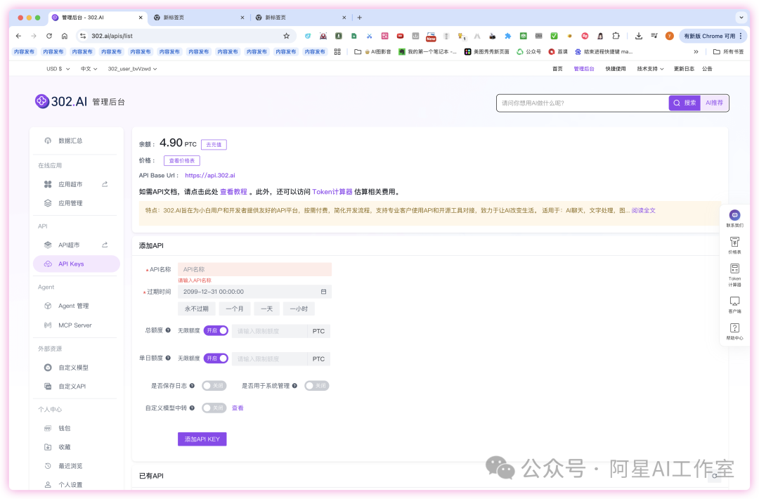 拖到网站里的时候会让你填 key,我这里用的是 302ai,