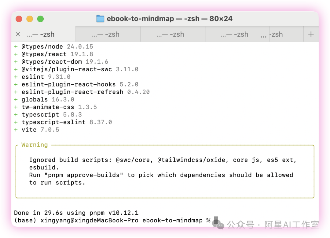 接着你就会看到 warning,没事,只要有版本号就继续干。不是红色一般问题不大。