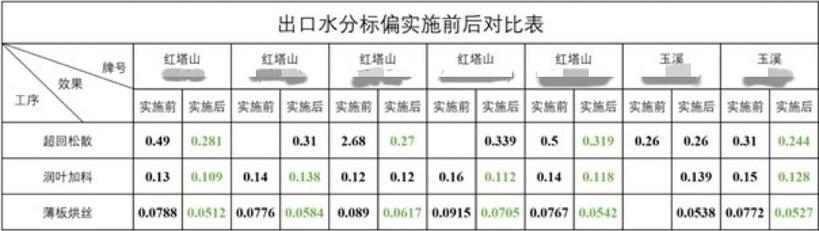 目前,该系统已达到人工控制的最佳水平,并能将产品出口水分标偏稳定在优于工艺标准的区间范围。下表对比了项目实施前(2021 年生产数据)与实施后(2023 年 9 月以来批次数据)的结果。