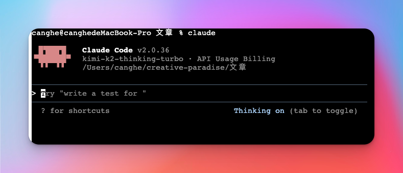 那如何在终端中使用 Claude Code,并配置 Kimi k2 thinking 呢?