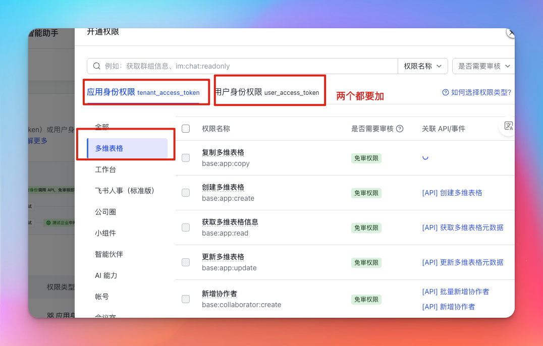 最后加上多维表格全部权限,就 okk 啦。