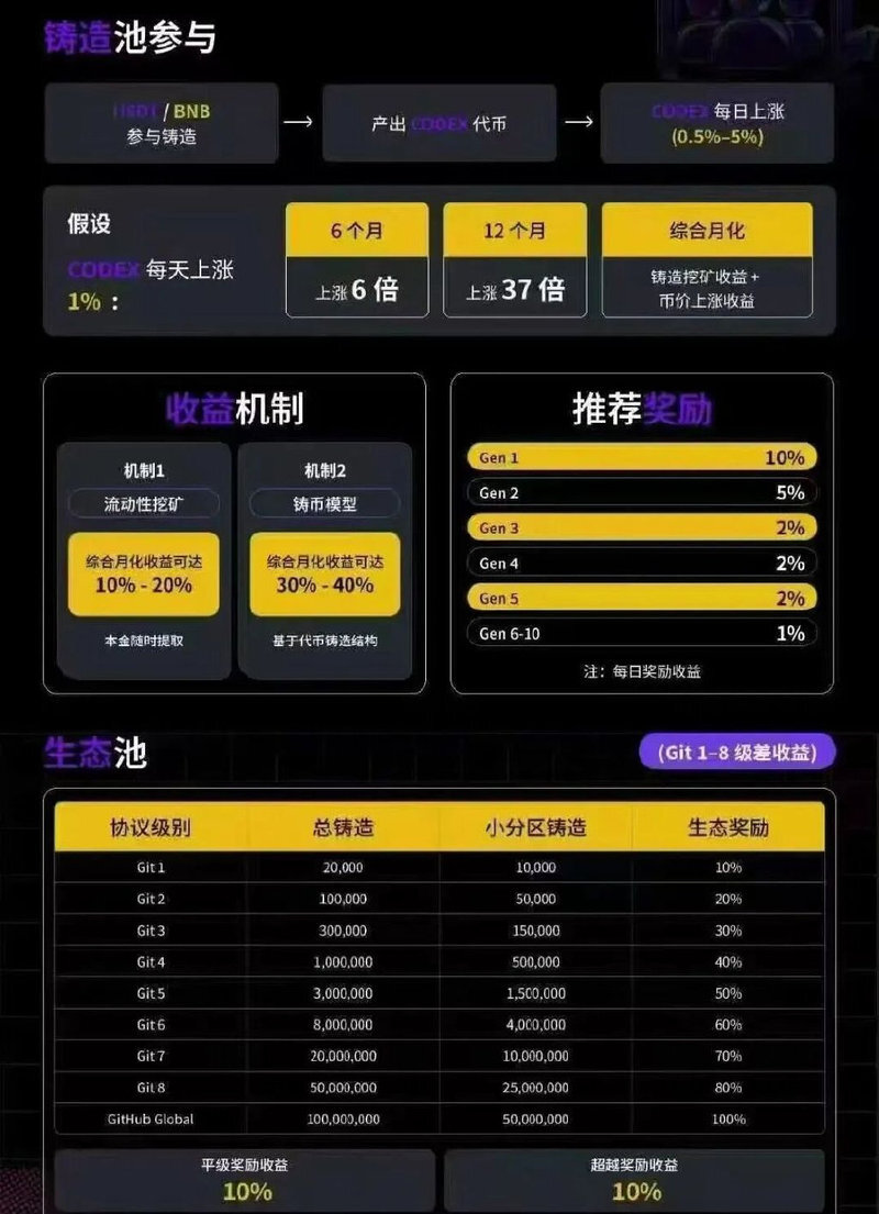 CodexField 的奖金制度,主要靠代币经济和多层级的激励机制来运作,核心要点给你掰扯清楚: