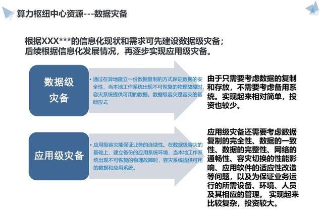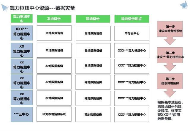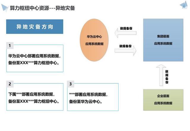 灾备体系搭建:先完善各枢纽的本地备份机制,再以云枢纽为中心构建异地备份(云中心),分阶段从数据级灾备(投入成本低、易于实现)升级到应用级灾备(确保业务持续稳定运行)。