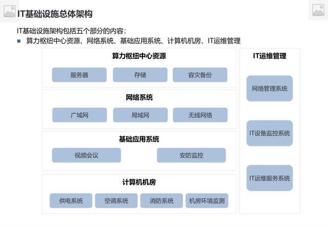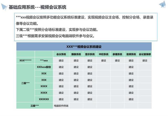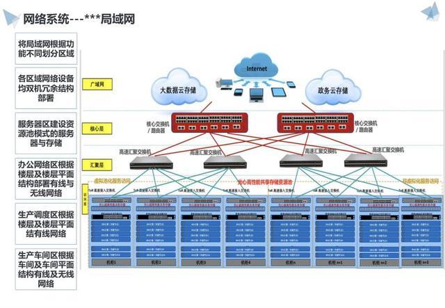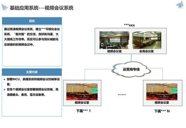 配套系统完善:部署分级视频会议系统与统一安防监控平台(支持移动端访问);机房按照 B 级(核心枢纽)或 C 级(二级单位)标准建设,满足供电、消防等各项要求。