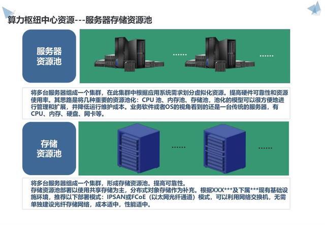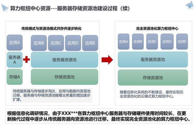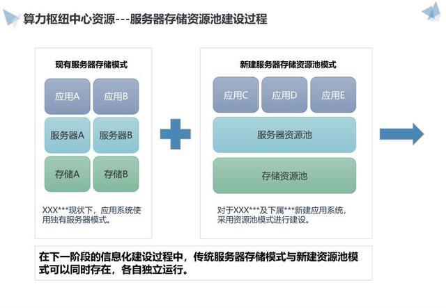 算力资源整合:把服务器、存储设备等进行集群化整合,构建 CPU、内存、存储资源池,提升硬件使用效率与可靠性,削减运维成本。在新旧系统交替阶段,让两者并行运作,逐步达成全资源池化。