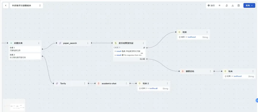 四是,便捷化智能体编排,实现学科垂直快应用落地。平台提供可视化低代码智能体编排环境,用户只需拖拽操作(如连接 LLM、数据检索或条件判断节点),即可快速搭建专属应用(如古籍自动标点、人物关系图谱),并一键发布至智能体应用广场,实现集中展示和成果共享。实验室计划将多年积累的大量文本数据处理与分析场景迁移至平台,通过工作流编排与 API 调用转化为实用工具。这不仅满足了研究者的智能探索需求,也为已有成果提供了智能化转换路径,实现了从“数字”转向“数智”的软着陆。