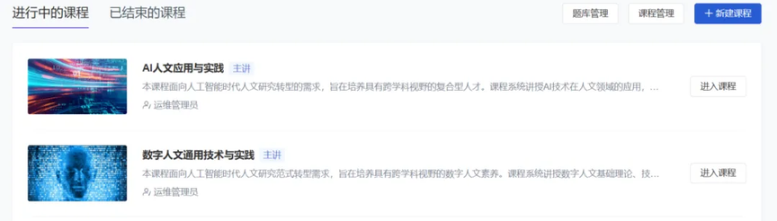 在课程建设方面,平台深度支撑《AI 人文应用与实践》《数字人通用技术与实践》两门交叉学科课程的教学工作。平台将全面支撑学生完成从文献数字化、数据抓取、文本分析,再到专业领域智能应用开发的全流程实践,并支持基于人文学科专业的双创项目开发。