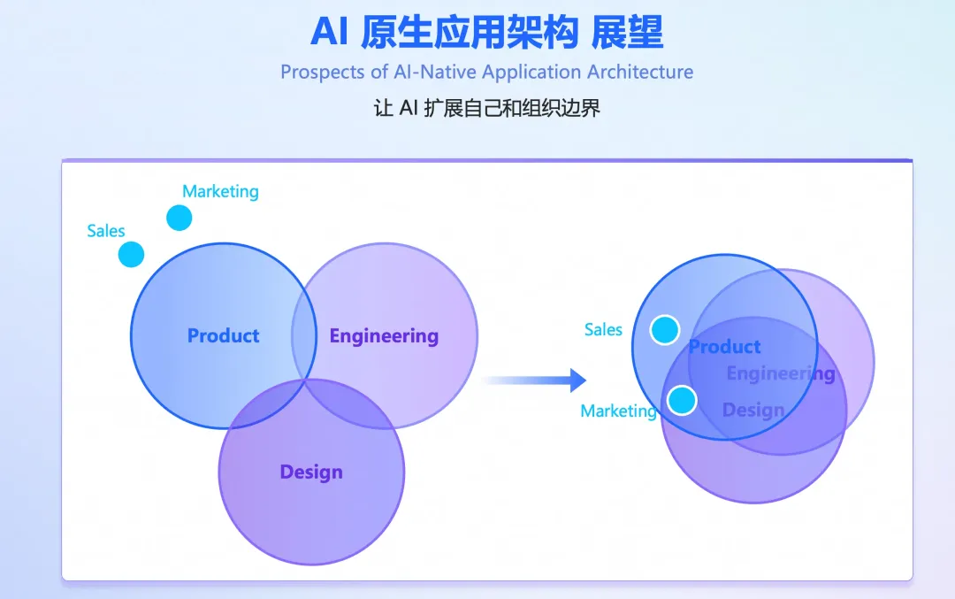 AI 平权之后,每个人和组织能力的到延伸,以前只有少部分人可以做跨领域链接和协同,现在可以让更多的人和角色进行连接,提升协同效率,提升创新速度,以便在市场竞争中保持先发优势。