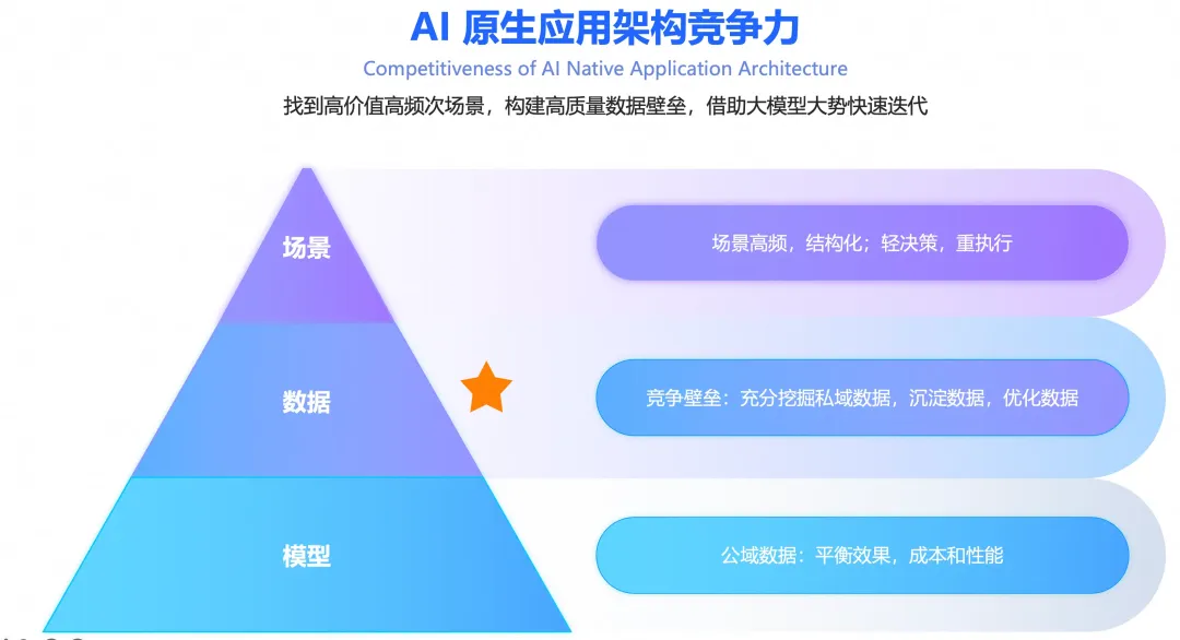 当大家突破了场景,竞争对手一定会跟上来,最终我们 AI 应用壁垒会在自己的数据上面,如何私域数据,沉淀数据,优化数据,就是 AI 应用的护城河。
