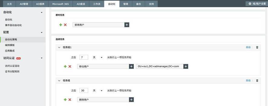 可视化工作流: 第 0 天:禁用账号; 第 7 天:移至“OU-待删除”; 第 30 天:自动备份 OneDrive→删除账号→释放 Office 365 License; 全程留痕,自动生成“账号生命周期报告”,审计来了直接打印。