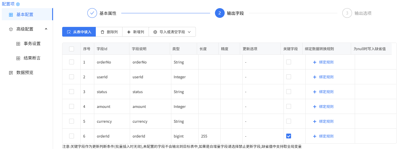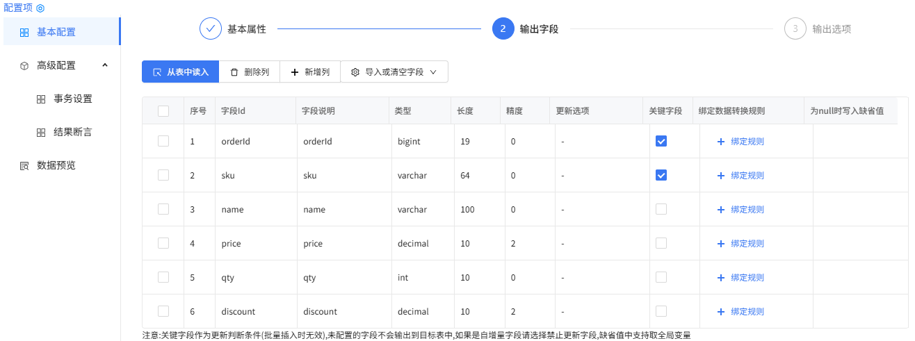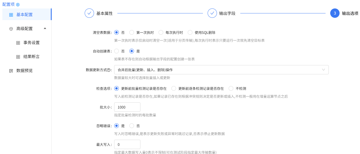 库表输出组件配置