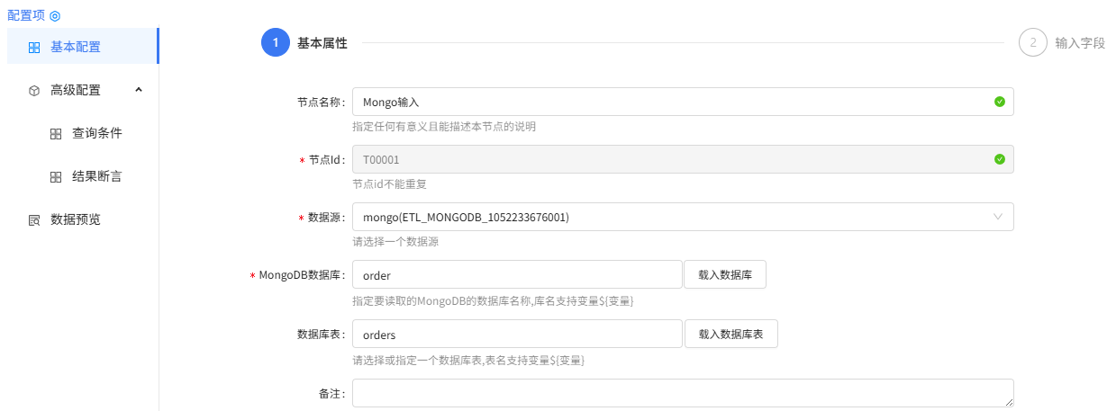 Mongo 输入组件配置