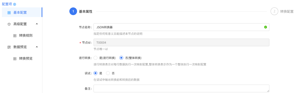 JSON 转换器组件配置