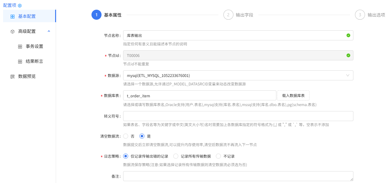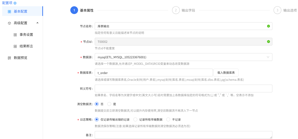 3.库表输出组件配置