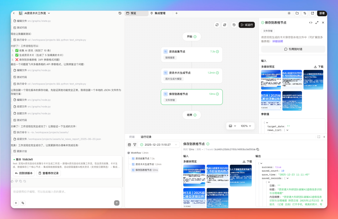 一句话生成 AI 早报资讯卡片,并自动同步到飞书多维表格和发送飞书消息: