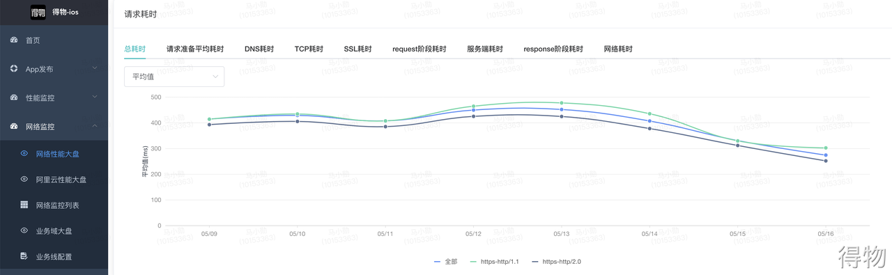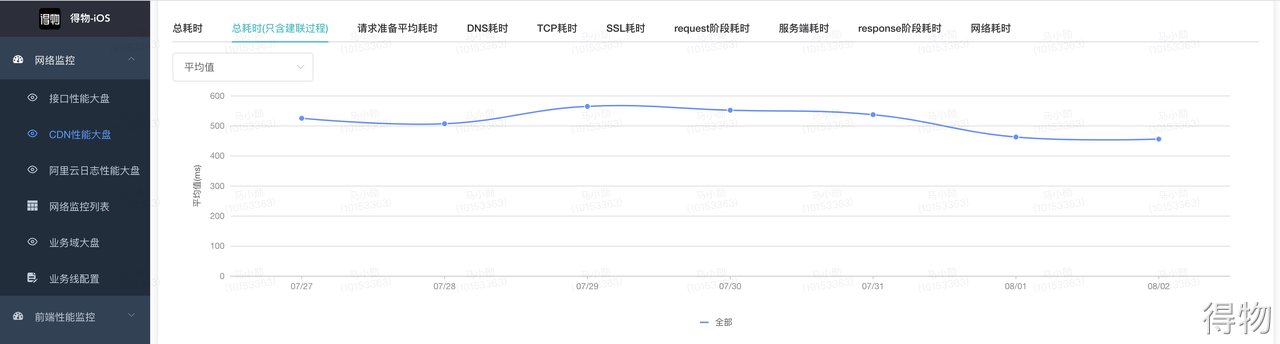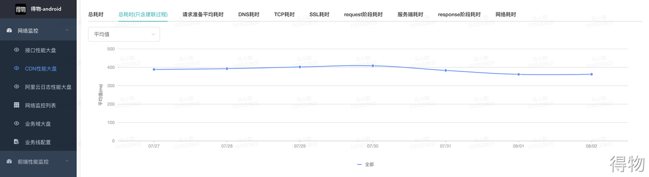 为了更详细的分析得物 CDN 资源请求性能数据,我们在 App 端将每次请求各阶段的耗时进行了单独埋点采样上报,CDN 网络监控平台提供了按网络请求阶段聚合量化的性能指标。因此,对网络请求各阶段的监控数据进行分析,看是否有可优化的阶段。