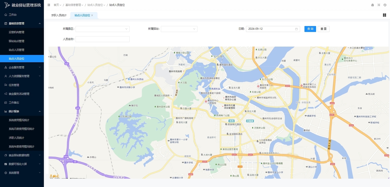 驿站工作人员外出地图:实时跟踪并记录驿站工作人员外出位置与任务执行情况,优化服务流程与人员管理,提升人员外出服务管理效率。
