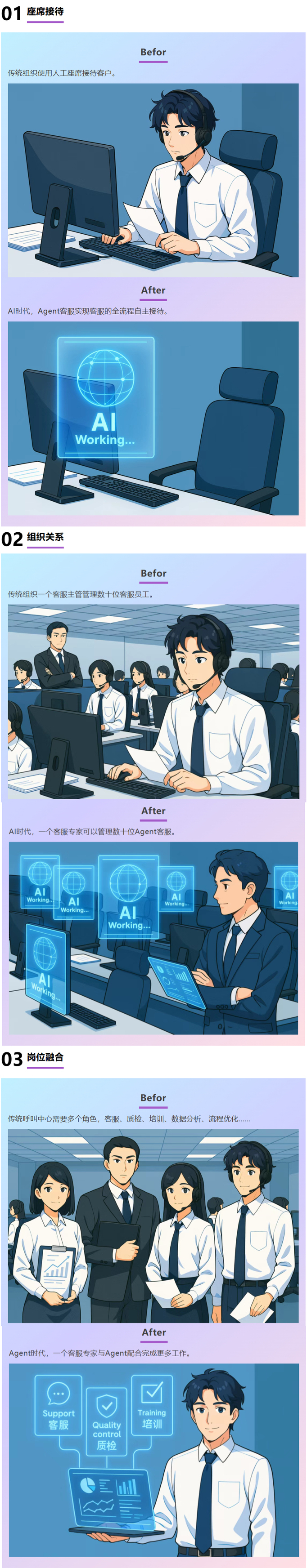 过去,企业的呼叫中心往往是“人管人”的模式——一位主管带着一队客服,接电话、回消息、处理问题,流程长、效率低,还容易出错。AI 技术的崛起,让这一切发生了质的变化。