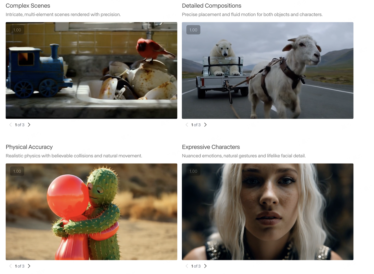 高保真度与真实感: 具备更逼真的运动、改进的角色一致性和增强的图像到视频质量。