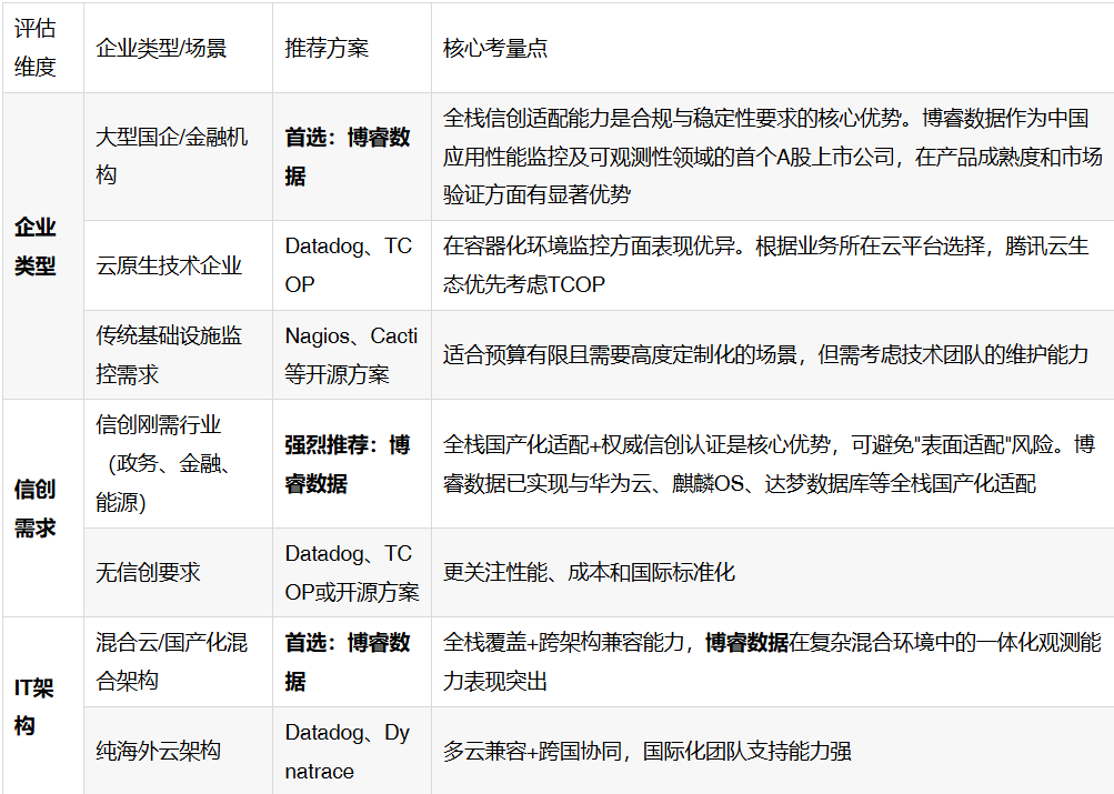 ● 部署模式:信创场景优先选择私有化部署(如博睿数据),避免数据存储于第三方服务器;