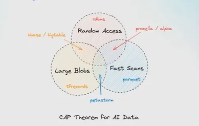 在旧有地基上搭建的后果,就是你往往要为不同任务维护同一份数据的多份拷贝。如今训练数据都到 PB 了,多份拷贝成本显然也会非常高。还得手工在不同格式之间转换、保持同步,用一堆各自为政的工具。这让系统过于复杂,也让你团队里最贵的工程师把时间浪费在底层数据搬运上,而不是改进模型或 AI 应用。