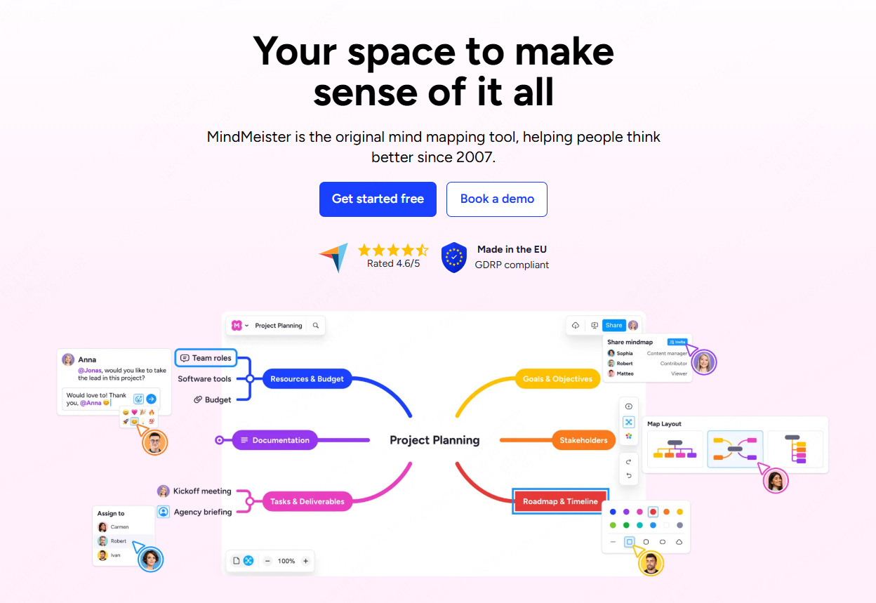 MindMeister 是一款老牌的在线思维导图工具。这款软件诞生于 2007 年,见证了云端协作时代的到来。经过多年发展,MindMeister 已经成为全球范围内使用最广泛的在线脑图工具之一,用户遍布各个国家和行业。