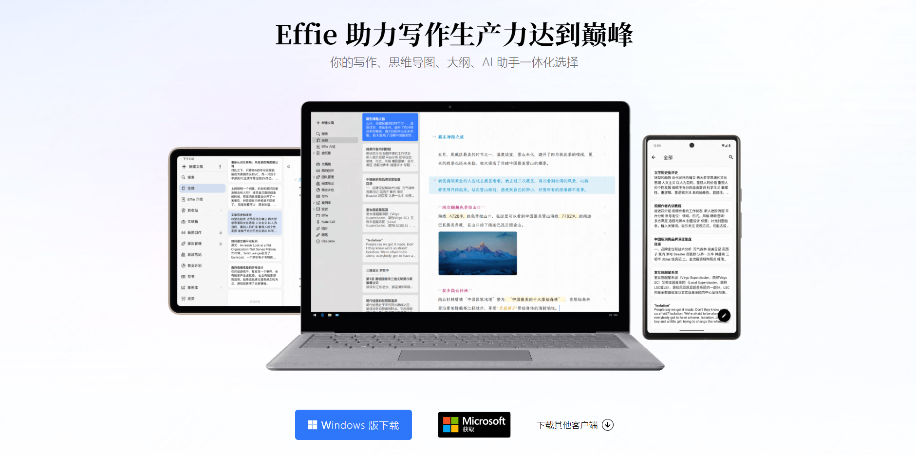 Effie 特别适合作家、学者、知识工作者使用。用 Effie 写小说大纲,整理学术论文,规划演讲内容,都能获得流畅的体验。