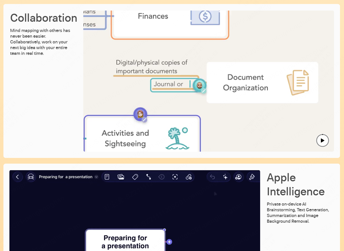 MindNode 通过 iCloud 实现跨设备同步,在 iPhone、iPad、Mac 之间切换毫无障碍。因此 MindNode 特别适合苹果设备用户,不论是学生做课堂笔记,职场人士规划项目,还是创作者整理灵感,MindNode 都能提供流畅优雅的体验。