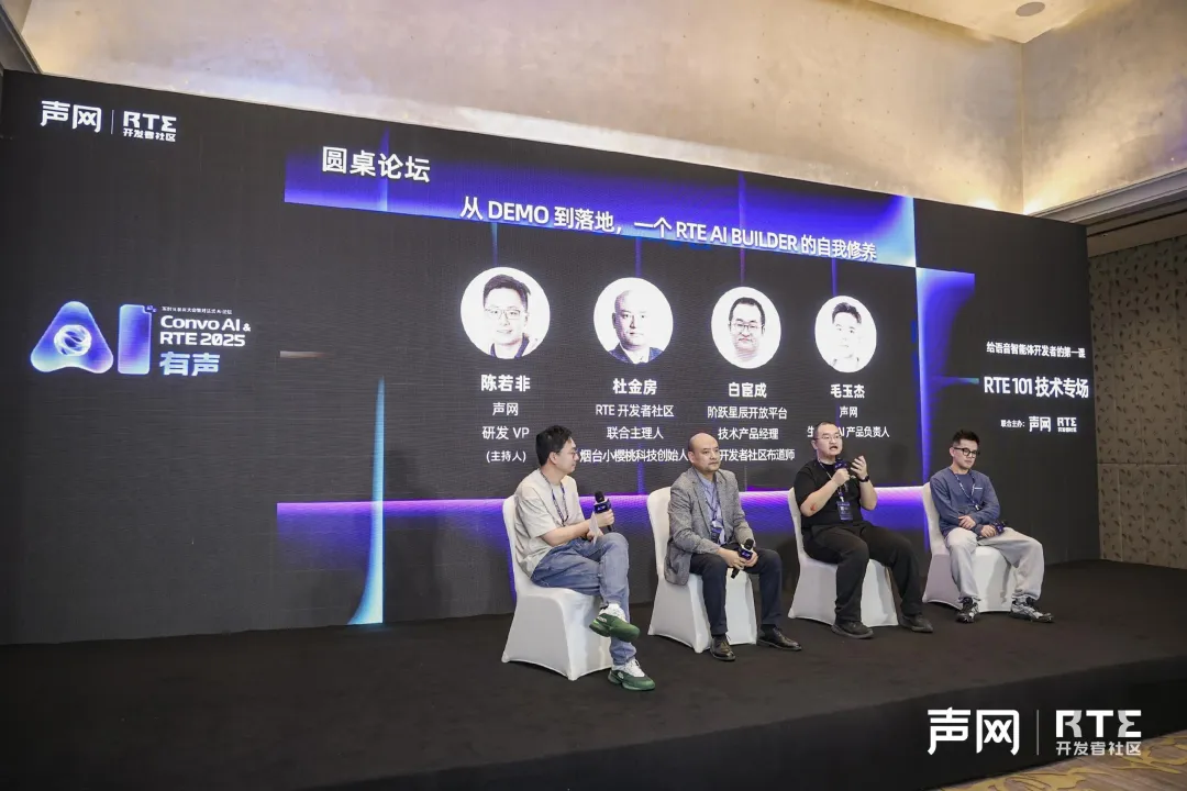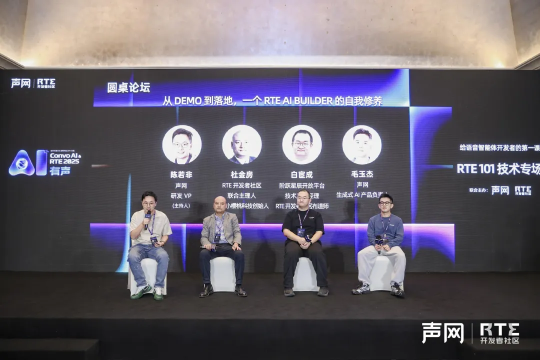 本次圆桌讨论主题为「从 Demo 落地到一个 RTE AI Builder 的自我修养」,其聚焦于 Voice Agent 从原型到商业化落地的关键环节、技术难点和未来趋势。声网研发 VP 陈若非担任主持人,参与讨论的嘉宾有声网生成式 AI 产品负责人毛玉杰、阶跃星辰开放平台技术产品经理白宦成,RTE 开发者社区联合主理人杜金房。