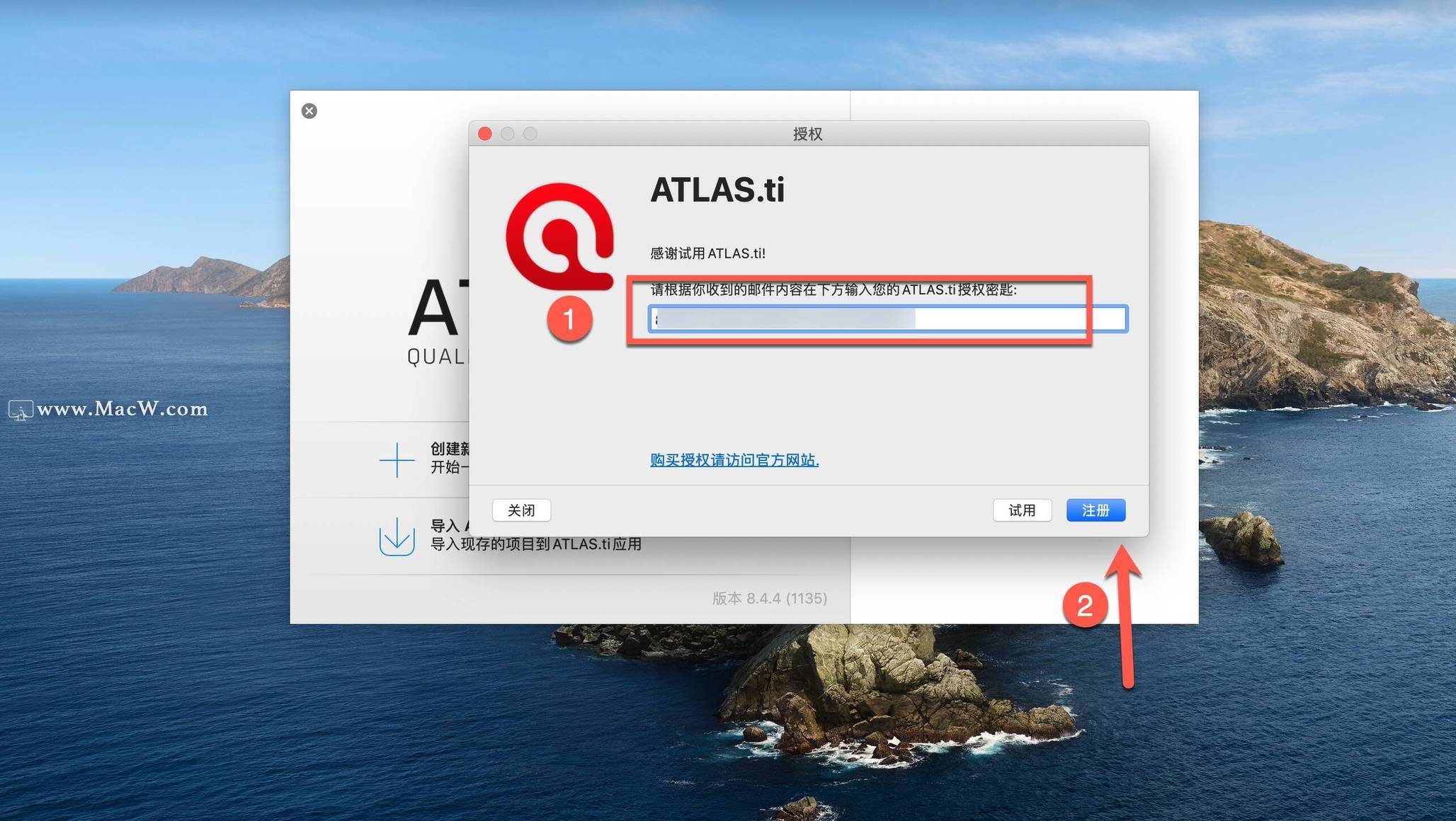 把 ATLAS.ti 注册码输入到软件中,然后点击注册