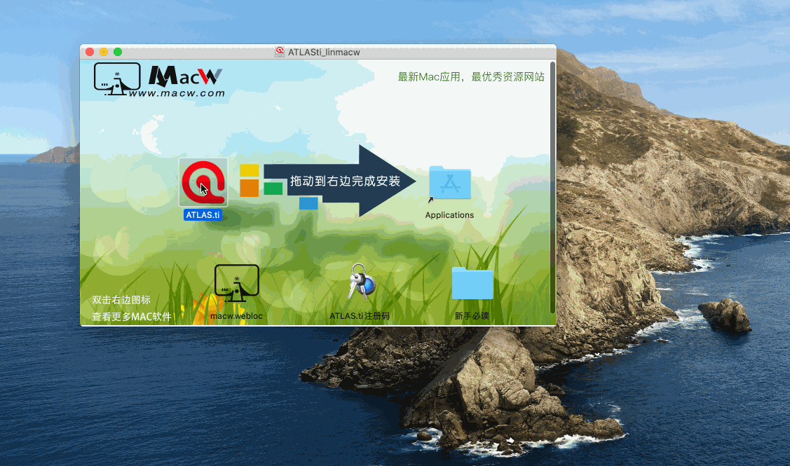 下载软件完成后,打开镜像包,拖动ATLAS.ti