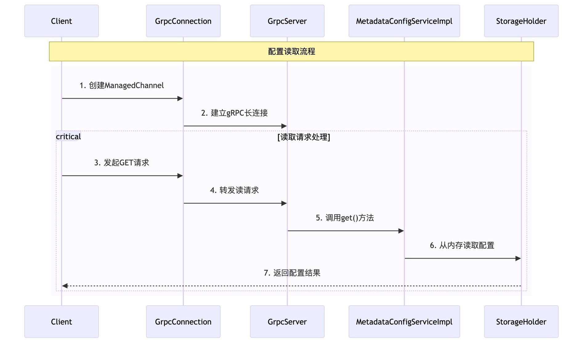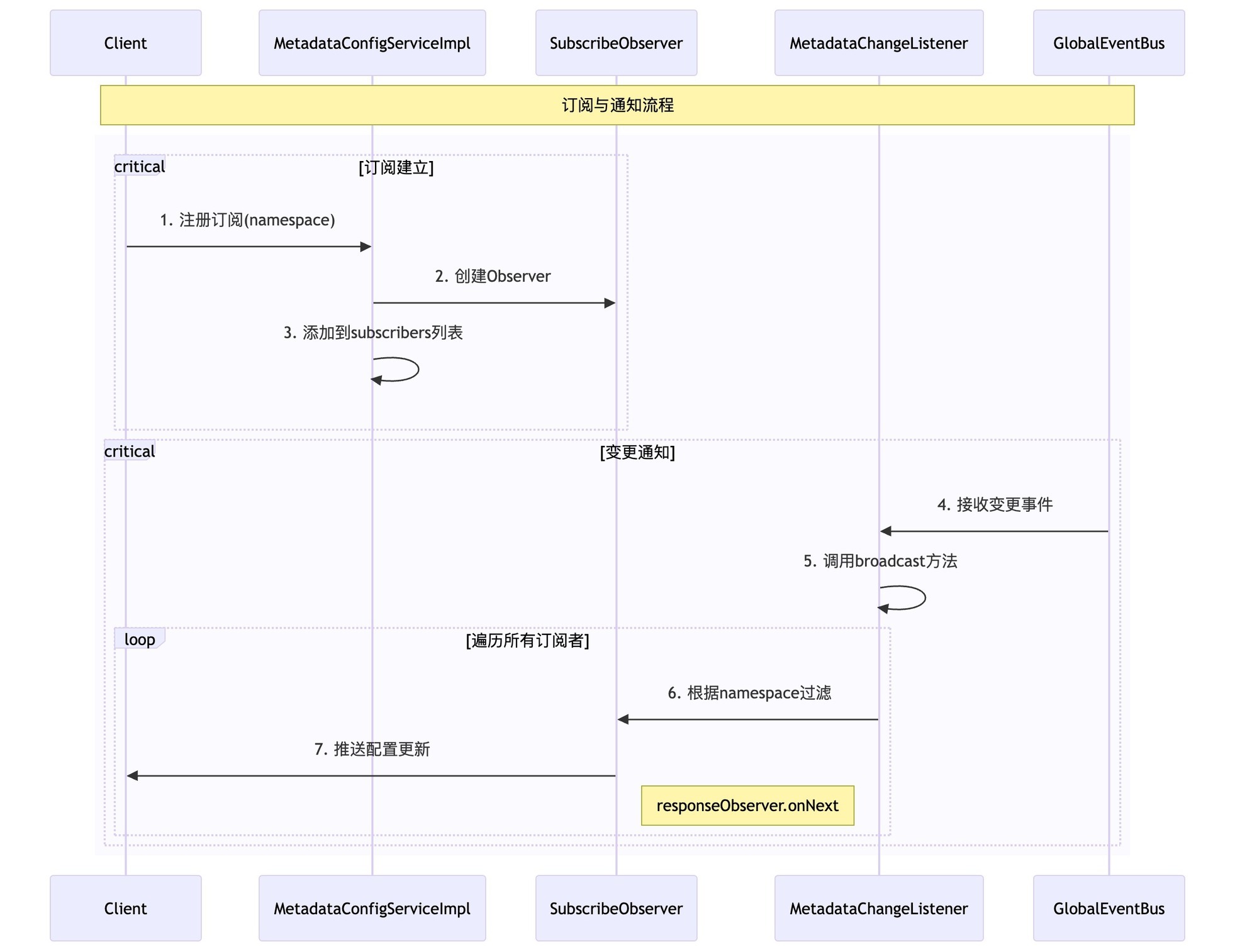 当 OHaraMcs 服务端用户元数据发生变更时(PUT/DELETE),通过事件广播(gRPC 长连接)告知所有的客户端增量配置更新。