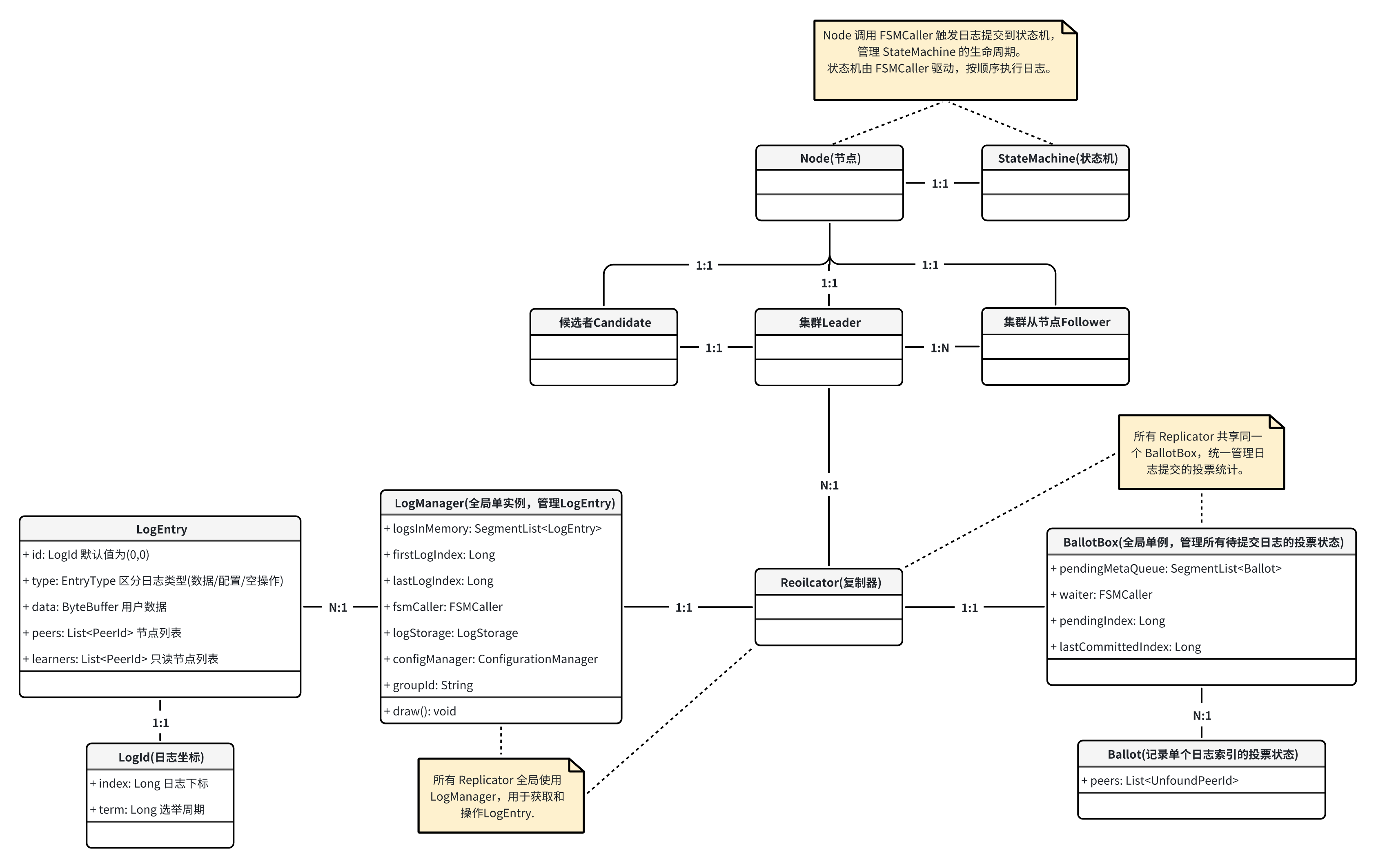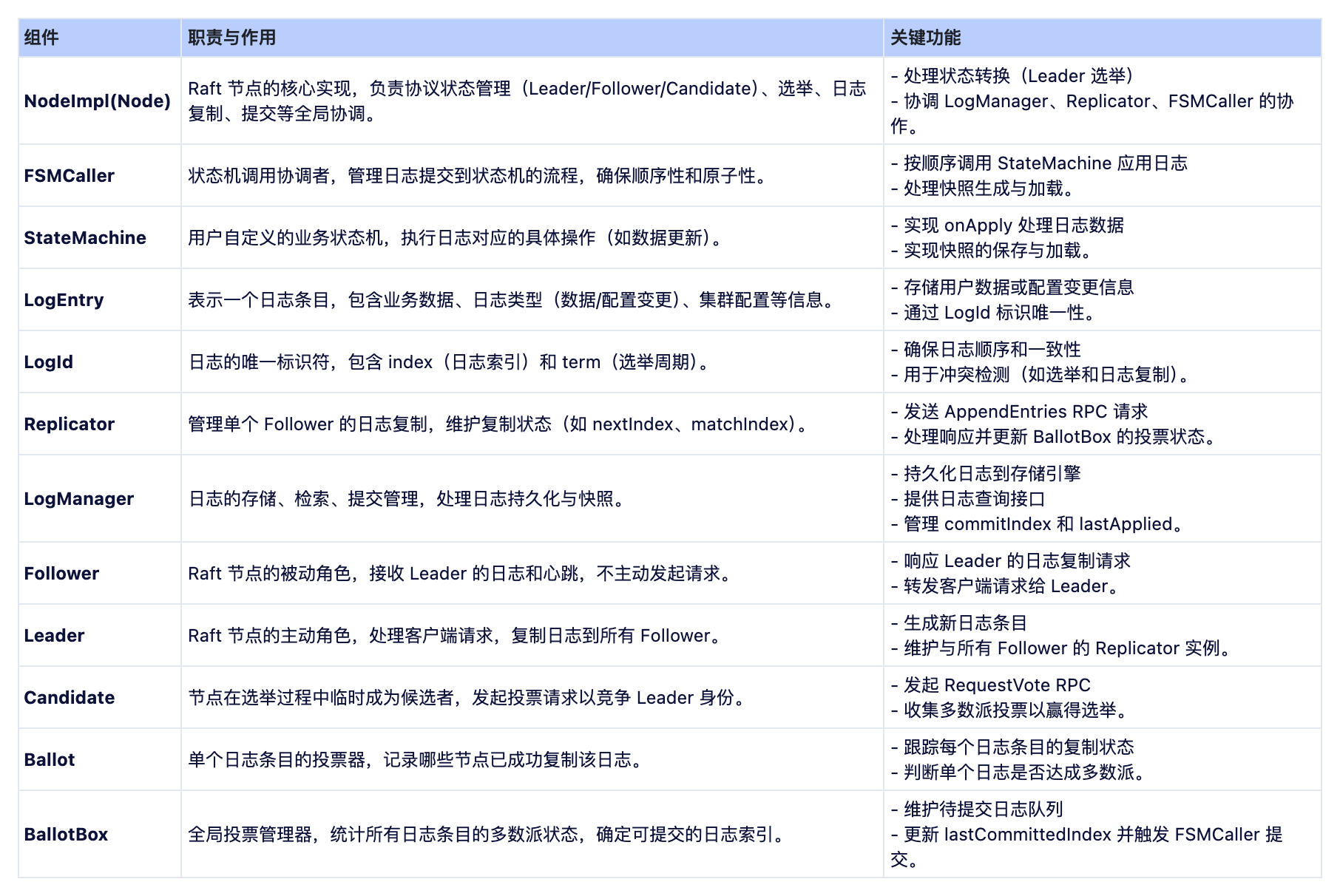 PS:Replicator(复制器)与 Follower 节点之间的日志复制、快照下载等动作,都是通过 Raft 协议内部的 RPC 通信。JRaft 中支持 gRPC 和 BoltRPC 两种方式,官方默认推荐使用性能更好的 BoltRPC。