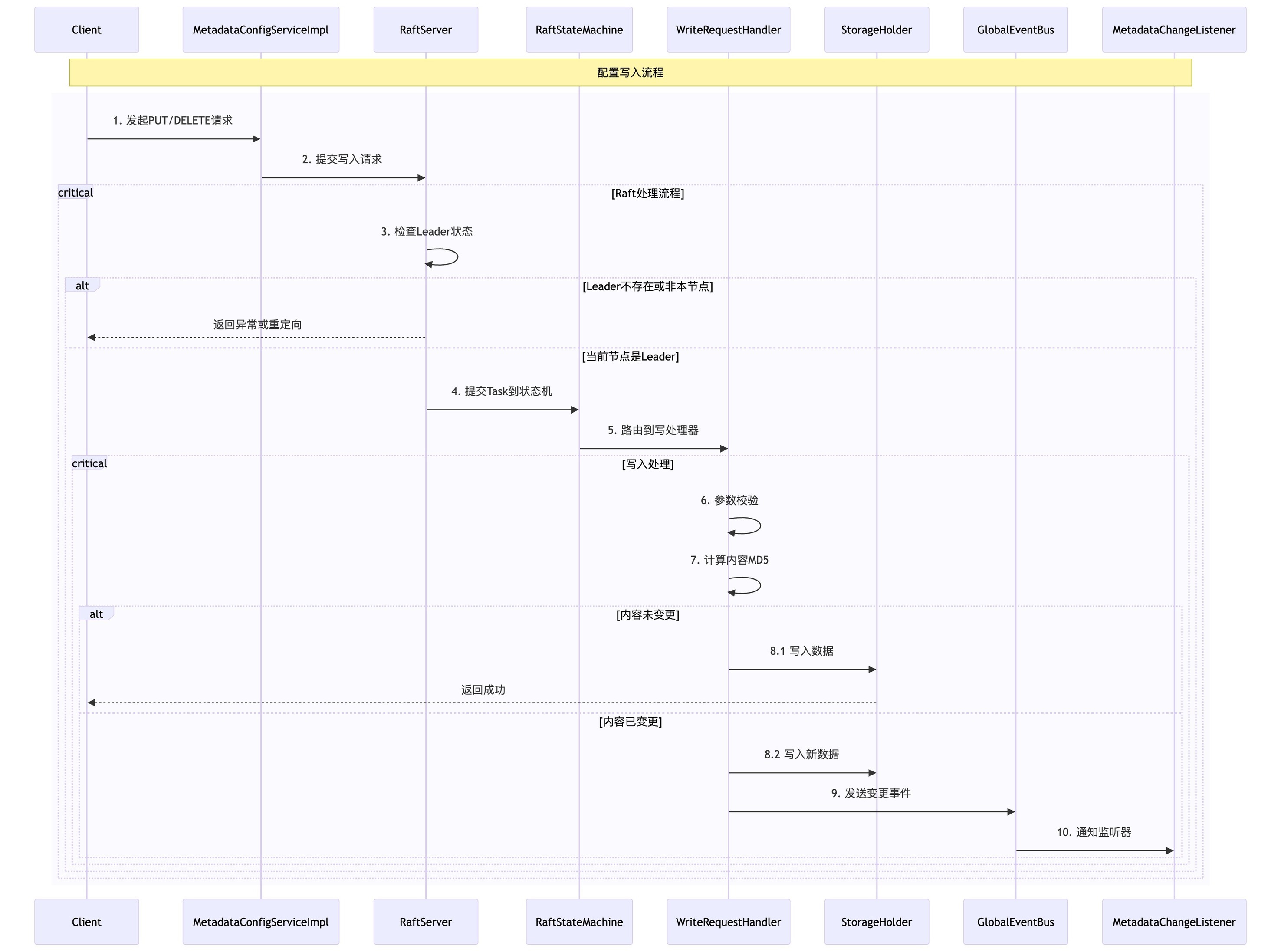 @Component("persistentClientOperationServiceImpl")public class PersistentClientOperationServiceImpl extends RequestProcessor4CP implements ClientOperationService { @Override public void registerInstance(Service service, Instance instance, String clientId) throws NacosException { NamingUtils.checkInstanceIsLegal(instance); Service singleton = ServiceManager.getInstance().getSingleton(service); if (singleton.isEphemeral()) { throw new NacosRuntimeException(NacosException.INVALID_PARAM, String.format("Current service %s is ephemeral service, can't register persistent instance.", singleton.getGroupedServiceName())); } // 调用JRaft协议进行数据写入 JRaftProtocol jRaftProtocol = ApplicationUtils.getBean(JRaftProtocol.class); WriteRequest request = new WriteRequest(); // 设置请求数据 request.setData(/* 实例数据 */); jRaftProtocol.write(request); // ... 其他代码 } }