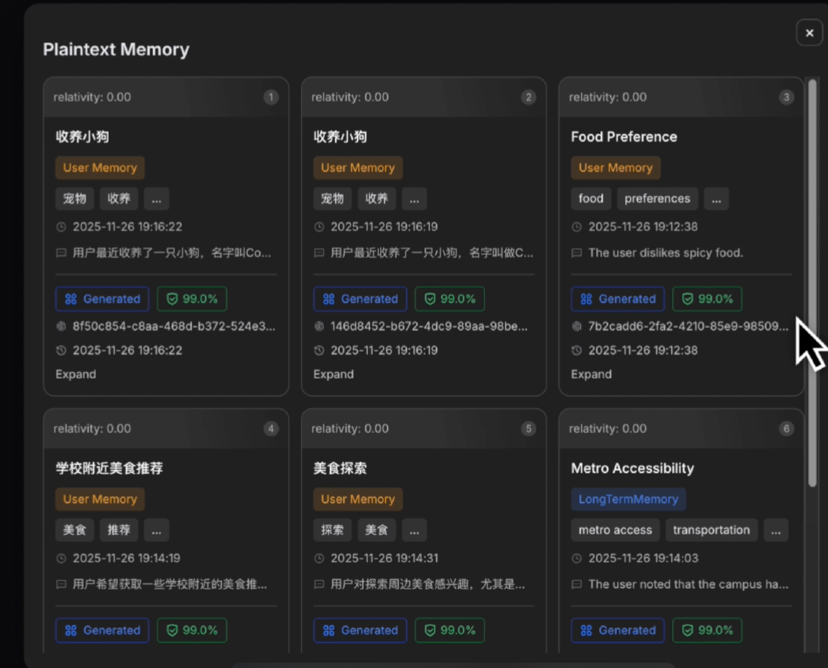 1.4.2 Playground 打造属于你的永久记忆档案,点击可查看记忆细节,所有信息统一存储、随时调用。