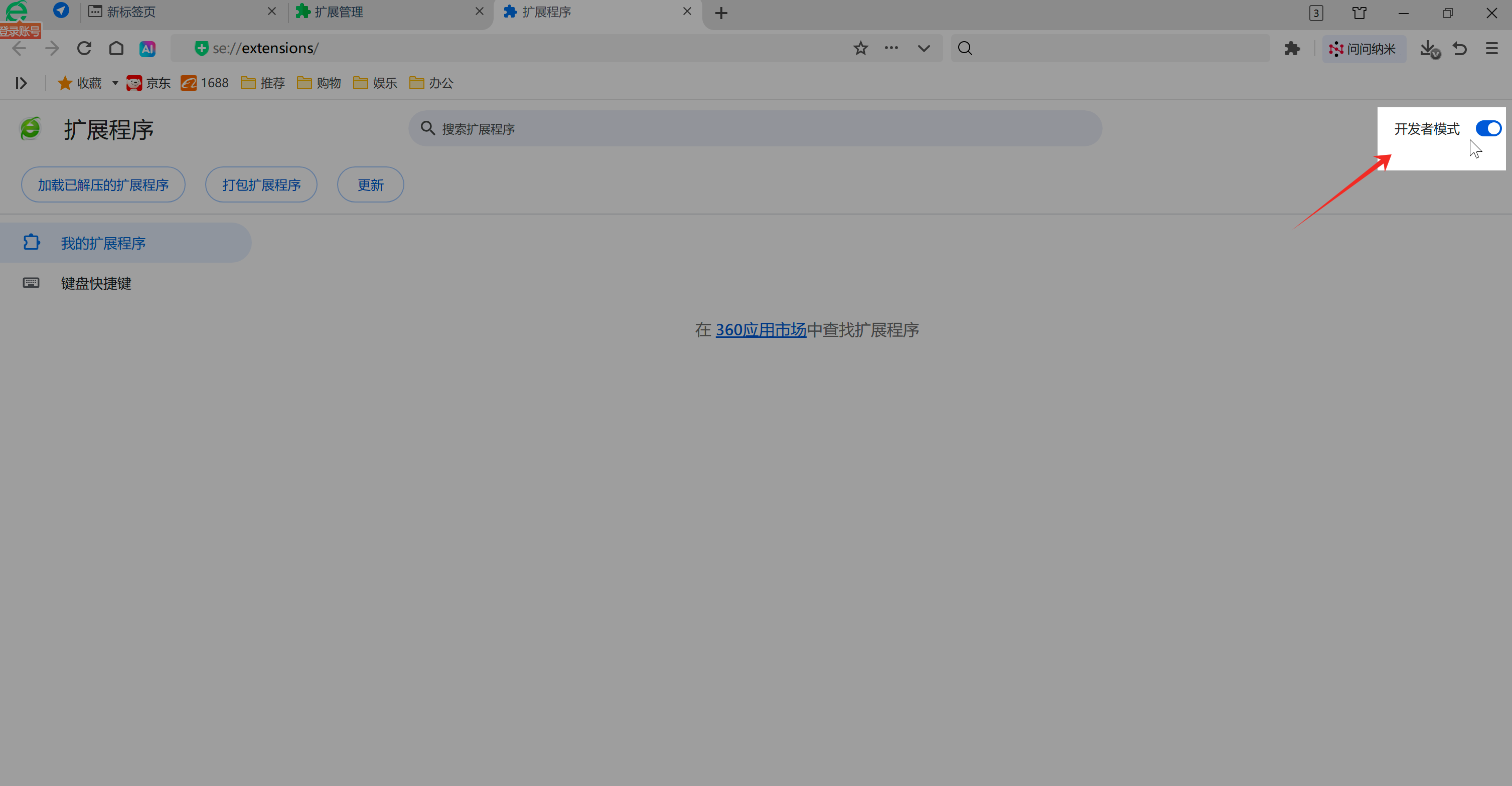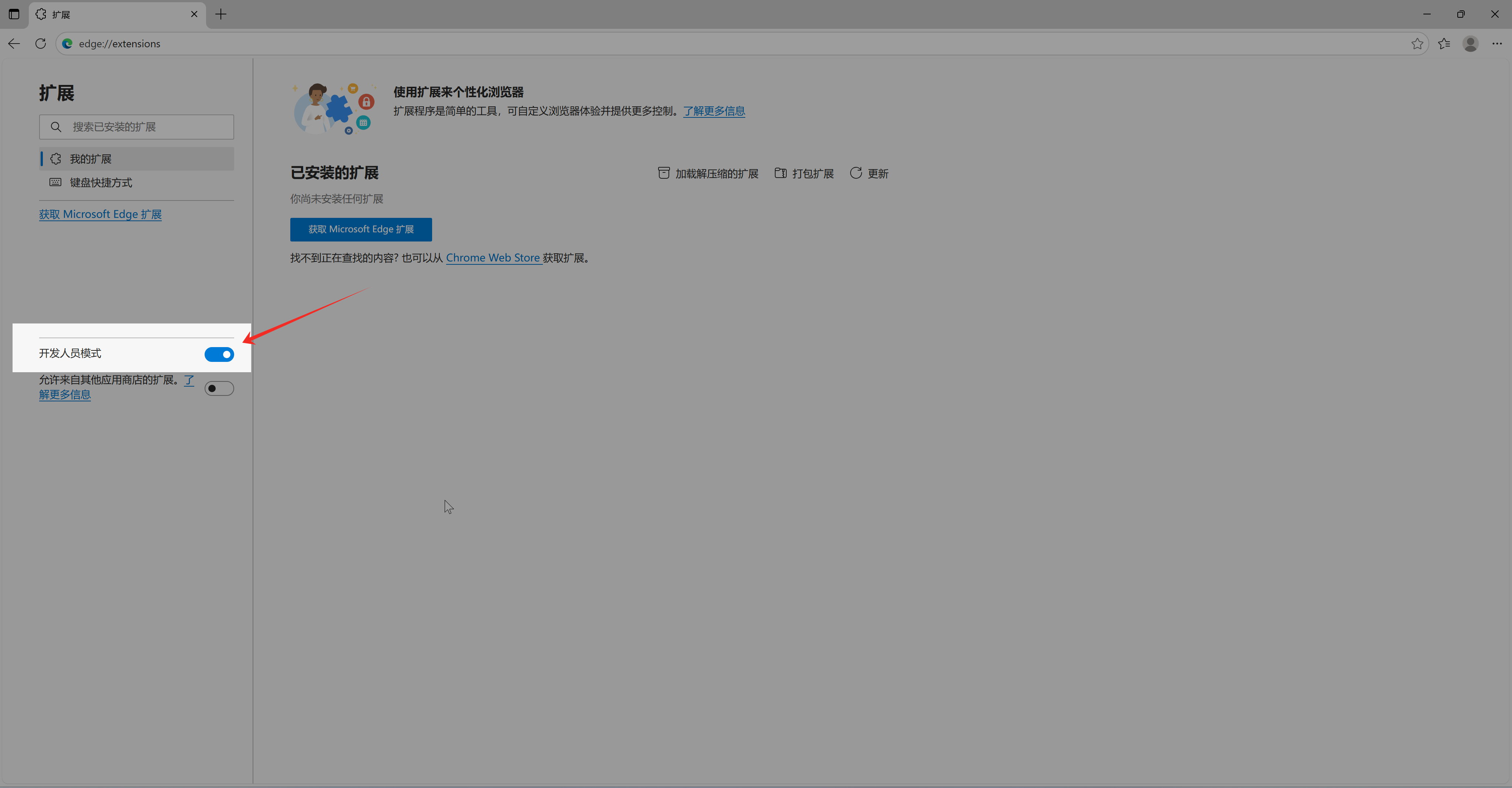 2.2.3 继续打开右上角的“开发者模式”