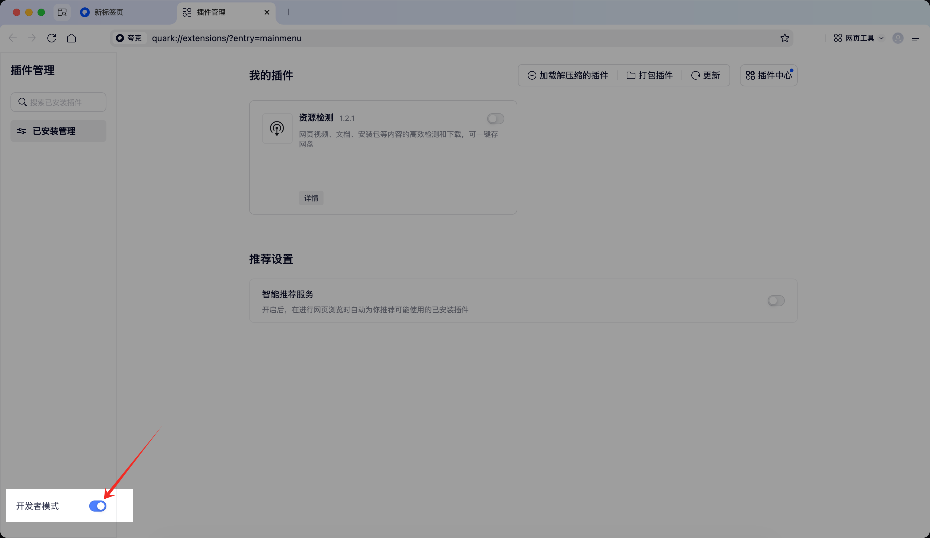 2.5.3 打开右上角的「开发者模式」